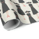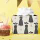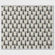 A minimalist fashion pattern featuring elegant faceless women in classic black A-line dresses with red accents and wide-brimmed hats. Clean shapes and solid color blocks create a modern, understated design with timeless appeal.