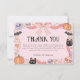 Säg ett stort tack i stil med den här lilla Boo Halloween-babystölden. Tack för ditt kort! Med ett sött spöke med ett pastellfärgat rosa-band, delikata stjärnor och en mjuk Halloween-palett, blandar den här coquette-inspirerade designen sig på spå och söt perfekt. Idealisk för att du tackade gästerna efter ditt gigantiska firande!
