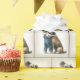 En liten pojke med blå jean-overaller och basebollsockel som kramar en stor skum hund