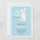 Den här designen har ett Påsk-födelsedagstema "En Bunny Sweet gör en" med ett enkelt ljusblått schackat gingham mönster, ett sött, handskrivet skript med söt påskhare med illustration av påskägget. Den här inbjudan kan vara lätt att personlig med din personliga händelseinformation.