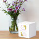 En liten fjäril är på väg! Rosa, lila och gult samt soligt gul ros mot ett rosa geometriskt ram