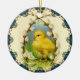 Vacker julprydnad med lite baby chick omgiven av blomknoppar. Fin för människor som samlar in fågeldekorationer.