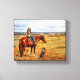 En ung cowgirl väntar på att hennes pappa ska hinna ifatt så att de kan börja riva upp boskapen. Deras pålitliga boskapsuppfödning tittar ivrigt på besättningen i avstånd medan hästen tar tillfället i akt och doserar. Realistiskt konstnärligt verk skapat från en ursprunglig oljemålning av häst- och vildlevande konstnären Crista S. Forest.