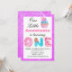 Flicka och söt lilla Cupkaka lila glitter första födelsedagsinbjudan med donut och godis brev. Lägg enkelt till namn i fullt och datum, tid och adress i födelsedagsfesten. Perfekt för en söt liten prinsessa som vänder en.