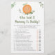 De här vackra gissarna som sa att det är Mamma- eller pappas spelkort är en roligt Baby Shower-aktivitet. Ge dem bara runt under babyduschen där gästerna får roligt att gissa vem som sa varje påstående-Mamma eller pappa. Utformningen gör att vattenfärgen blir grön med ett sött klementin.