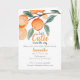 En vacker, lysande neutralt, babyduschinbjudan. En Little Cutie är på väg att visa att samlingen har vattenfärgsfärgade orangar, typsnitt och färg.