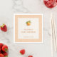 Little Cutie orange gingham baby shower party napkins featuring sweet citrus details and a classic gingham pattern. Perfect for coordinating with a Little Cutie baby shower theme and adding a fresh pop of orange to your dessert or drink table. Ideal for summer, citrus themed, and gender neutral baby showers. Customizable text. Print ready design.