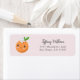 Returadressetikett för ett Little Cutie-temaparty. Anpassa den här produkten genom att lägga till ditt namn och adress. Använda den här etiketten när du skickar ut festinbjudan och/eller tackkort. Clementine har ett sött leende på ansikte och vit blomma på toppen. Den här rosan är underbar för en flickdusch.