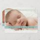 "Vi drömde om en liten dröm... och han blev sann" - läser det ljuva budskapet på fronten som introducerar din lilla pojke till familj och vänner. Den här söta designen är helt modern och elegant enkel och innehåller två foton av baby - ett på framsidan, ett på baksidan och är adorberad med en fingerad bild av ett vackert vattenribbonbild. Obs! Banderolleffekten är en platt grafik och är endast avsedd att se ut som ett verkligt tredimensionellt band.