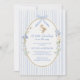 The invitation showcases a soft blue striped background, providing a serene and inviting canvas that evokes the freshness of springtime. At the heart of the design is a hand-painted oval frame, elegantly adorned with an illustration of an adorable duckling nestled among white and blue flowers. This playful and sweet imagery adds a sense of joy and anticipation to your announcement.