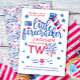 Fira din lilla rackare på andra födelsedagen med den här festinbjudan på 4:e juli! Den här sommarens födelsedagskalender är perfekt för bakgård party, familjemöten eller 4:e firande i juli. Anpassa med din evenemangsinformation för att skapa en glatt, stjärnig inbjudan som dina gäster kommer att skicka till kärlek.