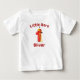 This personalized first birthday t-shirt features a large, vibrant red number "1" topped with a classic firefighter's helmet and leaning against a yellow ladder.