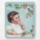 Ett litet barn tittar intensivt på blåfågeln vid en blommar träd gren. Utformning av vintagen är söt i mjukt akvarium och rosa färg.