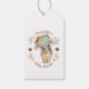 Vattenfärgad liten flickas babyduschfest gynnar märkre, med en liten flicka elefant i bågar och överdrag i en boho stil, i orange och i skal. Baksidan är tom för skrivning.