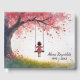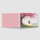 En ung flicka i en rosa klänning sitter på en sväng hängande från en körsbärsliknande blommar träd för en minnesstund eller begravning. All text kan ändras.