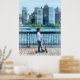 Utformning av Susan Savad - Den här lilla flickan har underbar tid på sig att rida sin skoter på strandpromenaden i Hoboken i New jersey. En underbar bild av Manhattan-skylinen finns i bakgrunden.
