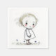 En liten flicka med rosiga kinder står mitt bland små vilda blommor i gräset, och utesluter en känsla av oskuld och nyfikenhet