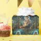 Den lilla flickan med en glödande ansikte från ett burk av fireflies i mörk fält