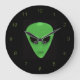 Little Grönt Man Alien Ansikte Stor Klocka