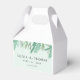 Den här charmerande destinationsbröllopsförmånen har illustrationer av vattenfärgen handflatan löv i skuggor av grönt och parets datumangivelser för namn och bröllop på en grönt för blek turkos som inspirerats av den tydliga vattenen i Bukt Kusten.