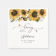 Rustic och boho bin, babydusch, papper napkin med vattenfärgad illustration av gult solblommor och baby med humlor. I texten står det: "lite honung är på väg."