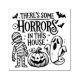 Lila fasor - Cute, Creepy och Fullt av teckengummi frimärke A trio av tecknad Halloween-tecken - en mummi, en jack-o'-lantern och ett spöke - samlas under den kinkiga frasen "Det finns vissa fasor i denna kammare", omgiven av fladderande fladdermus. Med fetstilta och lekfull energi blandar designen skokig roligt med festive flair, och firar halloween kaos och skönhet på en underbar scen.