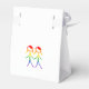 Den här lilla förmånslådan har en fin och hjärtlig design för dina gäster i bröllop. Bilden visar två kvinnor, i form av elegant stick figurer, som håller i händer. Figurer är färgad i en vacker regnbåge som symboliserar kärlek och mångfald. Den här lådan är ett underbart sätt att hysa en liten rang eller ett tecken på uppskattning för alla som delade på er speciella dag.