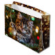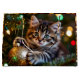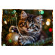 A sweet Christmas gift bag with a little kitten playing with a gold ornament on the Christmas tree.