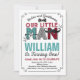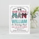 Lilla man 1:a födelsedagsinbjudan. Alla utformningar är © PIXEL PERFECTION PARTY LTD