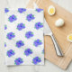 Ljust lila för hand- eller kökstmedduk med en blommigt konsttryckare som är modern tryckt med ett blått handtag och grönt på vitt.