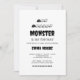 This playful baby shower design features bold black typography with a fun little monster theme, creating a whimsical and modern celebration vibe. The clean black and white layout keeps the look stylish while adding personality through expressive fonts and lighthearted wording. Fully editable text allows easy customization, making this design perfect for unique baby shower themes with a slightly spooky or Halloween-inspired aesthetic.