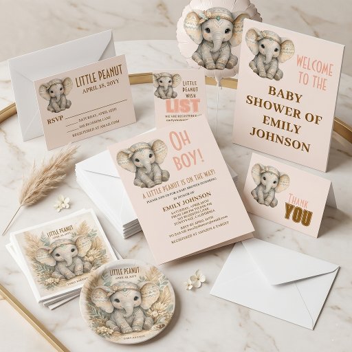Little Peanut Boho Safari Elephant Boy Baby Shower Inbjudningar