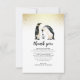 Ett sött tackkort med ett tankeväckande meddelande: "Blocket var tomt, våra baby tillhörigheter var få men allt har förändrats på grund av er! Vi skickar dig det här meddelandet med en liten tanke: vår lilla kommer snart att vara här för att använda den gåva du tog med dig! Tack för att du är en del av vår babydusch." Detta kan ändras till valfri text. Namn visas vid grund. Ovanför är "tack" skrivet i ett modernt skript med en handmålad vattenfärgad illustration av en penguinfamilj. Överst finns faux guld konetti. Korten går tillbaka till grått färg i gender-neutralt.