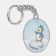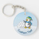 En liten penguin tecknad som väller framför en snöbollsstapel. Anpassningsbar på båda sidor.