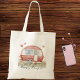 Cute camper caravan themed "Glamper" tote bag. Created with a watercolor style image of a retro pink glamper style travel trailer scene with pink butterflies and meadow flowers. You can edit the text to add your own name or other caption.