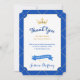 Den lilla prinemedda babyduschen tackar dig kort i royal-blått, med guld-shimmery-accenter. Anpassa med ditt namn och ett förtryckt meddelande - eller lämna meddelandet svart om du vill lämna utrymme för en handskriven anteckning.