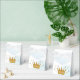 A little prince is on the way! Boy baby shower with gold crown and silver and gold stars with dreamy blue watercolor background