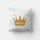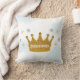 A little prince is on the way! Boy baby shower with gold crown and silver and gold stars with dreamy blue watercolor background