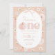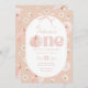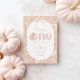 En söt pumpa! Blommigt pumpa och båge Tema 1:a födelsedagsinbjudan med persikobakgrund med daisy, pumpa och söt rosa båge.