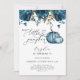 Cute fall-pojkens födelsedagsfest inbjudan-kort med vattenfärgillustration av blåpumpor med blommor. I texten står det "vår lilla pumpa XX är på väg X."