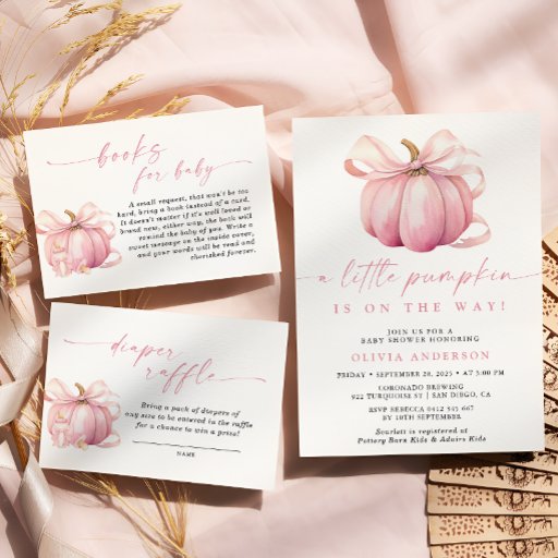 Little Pumpkin Cute Rosa Bow Girl Baby Shower-inbjudan. Matchande objekt är tillgängliga.