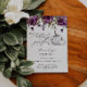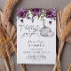 Kortet för den utfallande flickan i födelsedagsfest inbjudan med vattenfärg illustration av vita pumpor med lila blommor. I texten står det "vår lilla pumpa XX är på väg X."