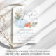 En söt och söt duschinbjudan till pojke med "en söt liten pumpa är på väg", skriven i en blandning av blå typografi och ett mjukt grått-manus i snyggt med en hjärtsvikt och en vattenfärgad bukett av en pastellblå pumpa, orange blommigtar och grön energi. Anpassa mor namn i ett modernt blåskript och duschdetaljer i enkel mjuk grått-typografi.