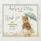 Rustic-stil duschdusch, dekorerad med mjukt färg och en vintage vattenfärgsbild av en söt liten knipa med parasol, i ett stil som liknar Beatrix Potters Peter Rabbit.