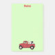 Anpassningsbarna ritade lite rött pickupa lastbil med en svart och vit ko i ryggen.