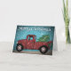 Anpassningsbar designade lilla röda lastbil i ett julkort på snöscenen.