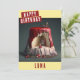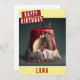 Ett sött födelsedagskort med ett litet rött Riding-Huva, matade födelsedagskalas på framsidan med "Grattis på födelsedagen", fet stil med versaler. Anpassa fronten genom att lägga till ditt/dina namn. Insidan av kortet har plats för det skrivna eller handskrivna meddelandet.