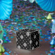 Lilla vita kristaller av snöflingor och snö på en svart bakgrund ge i den här presentlådan är en vacker och dramatisk fläck. Modern, lite Goth och perfekt för dina Helgdag.