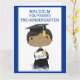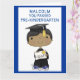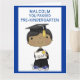 Den söta lilla pojken med mörk skinn bär svart hatt och gåva, alla klädda för sitt Pre-Kindergarten Studenten. Byt enkelt ut namn och klass så att det passar er. ©Christie Black