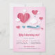 Grattis till din lilla väns födelsedag med dessa ärekränkande hjärtinbjudningar till rosan. Perfekt för de första födelsedagarna eller Alla hjärtans dagars födelsedagar, har dessa rosor hjärtformade luftballonger som flyter i molnen, med en ballong som följer med en ljusblå banderoll som kan anpassas (visas med "vår lilla älskling"). Anpassa med din party-information under.